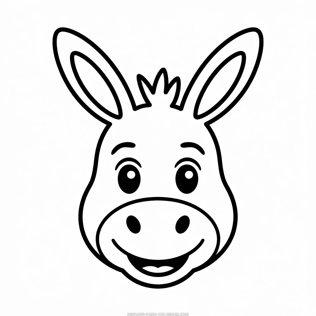 Dibujo para colorear gratis de Cara de Burro, un primer plano de la simpática y expresiva cara de un burro. Imprime y colorea gratis este dibujo de Cara de Burro para niños. Imagen PNG de alta calidad, en blanco y negro, optimizada para imprimir en PDF formato A4.