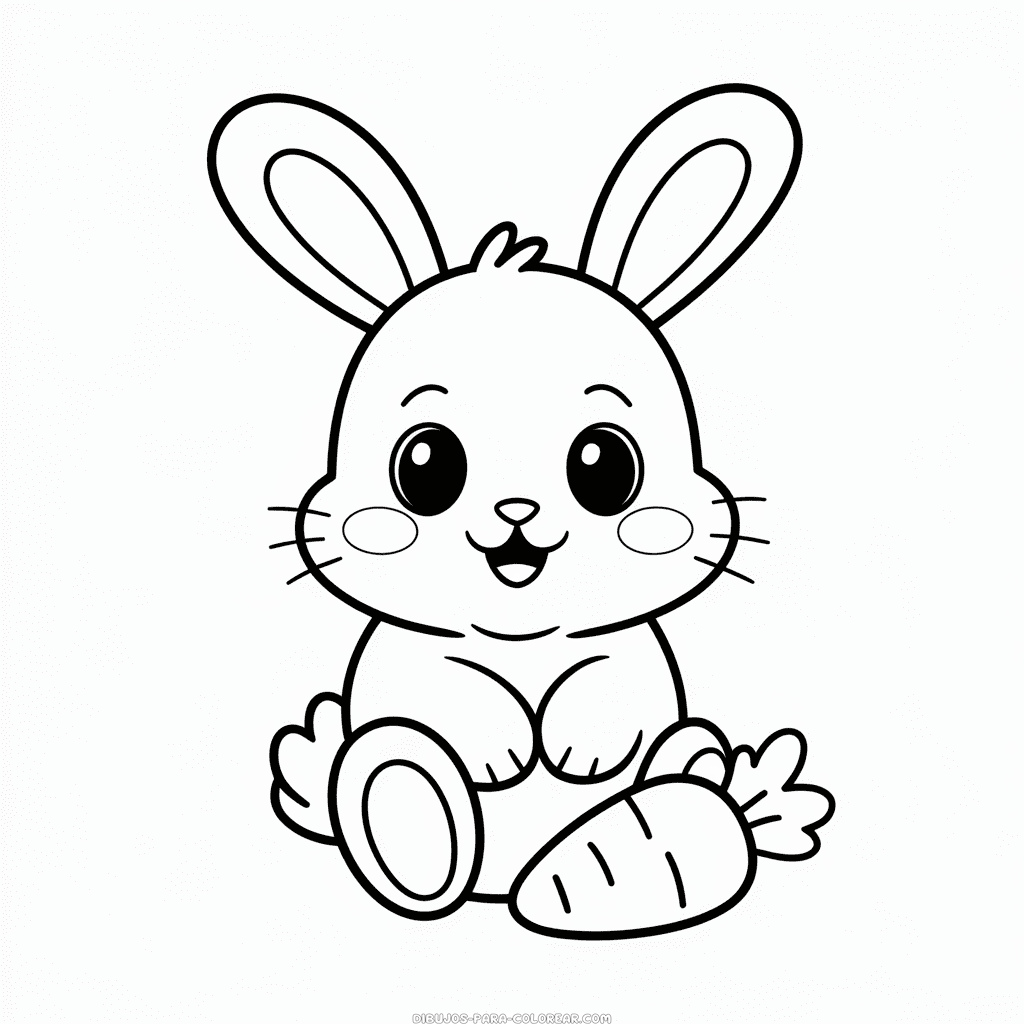 Dibujo para colorear gratis de Conejo Bebé, una imagen muy tierna de un pequeño conejito, perfecto para los amantes de los animales. Imprime y colorea gratis este dibujo de Conejo Bebé para niños. Imagen PNG de alta calidad, en blanco y negro, optimizada para imprimir en PDF formato A4.
