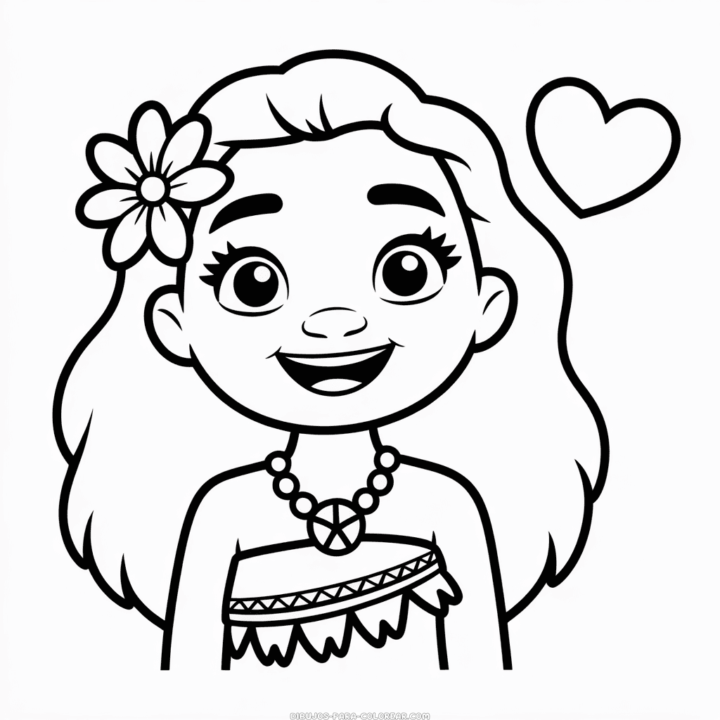 Dibujo para colorear gratis de Linda Moana, una ilustración especialmente adorable y simpática de la heroína de Disney. Imprime y colorea gratis este dibujo de Linda Moana para niños. Imagen PNG de alta calidad, en blanco y negro, optimizada para imprimir en PDF formato A4.