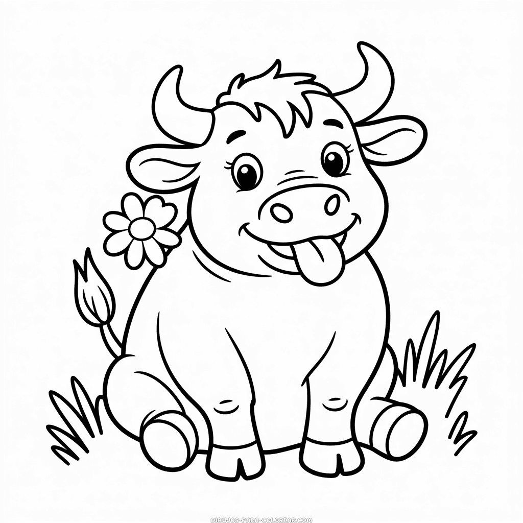 Dibujo para colorear gratis de Toro de Dibujos Animados, una simpática y divertida ilustración de un toro con un estilo de caricatura. Imprime y colorea gratis este dibujo de Toro de Dibujos Animados para niños. Imagen PNG de alta calidad, en blanco y negro, optimizada para imprimir en PDF formato A4.